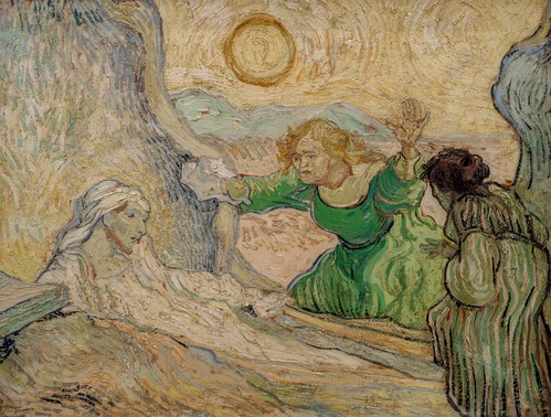 There is little doubt that van Gogh understands the effect Jesus’ action is having on the three siblings of Bethany: Lazarus and his two sisters, Mary and Martha. How would you describe the emotions that you see in each of the three? For example, is that not terror on the face and in the gestures of that one sister? For example, why are the sisters not looking at Jesus?