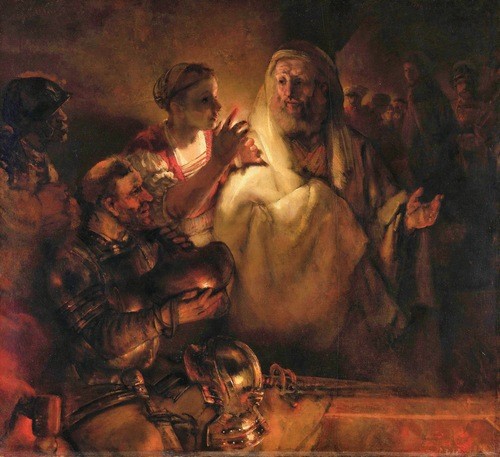 And as you contemplate the fruit of Rembrandt’s contemplation of Peter and Jesus and of the others placed there by the artist inside the frame, tell me, when you get a chance to write me back, what you consider the most compelling aspect of his painting.