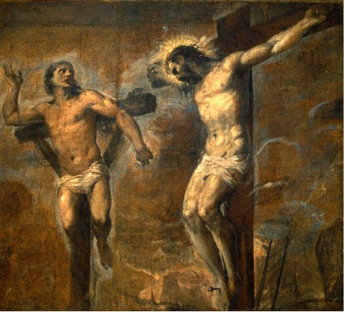 Two other men, both criminals, were also led out with him to be executed. When they came to the place called the Skull, they crucified him there, along with the criminals—one on his right, the other on his left. Jesus said, “Father, forgive them, for they do not know what they are doing.” And they divided up his clothes by casting lots. The people stood watching, and the rulers even sneered at him. They said, “He saved others; let him save himself if he is God’s Messiah, the Chosen One.” The soldiers also came up and mocked him. They offered him wine vinegar and said, “If you are the king of the Jews, save yourself.” There was a written notice above him, which read: this is the king of the jews. One of the criminals who hung there hurled insults at him: “Aren’t you the Messiah? Save yourself and us!” But the other criminal rebuked him. “Don’t you fear God,” he said, “since you are under the same sentence? We are punished justly, for we are getting what our deeds deserve. But this man has done nothing wrong.” Then he said, “Jesus, remember me when you come into your kingdom.” Jesus answered him, “Truly I tell you, today you will be with me in paradise.” (Luke 23:32-43.)