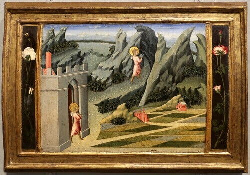 The Young John the Baptist Goes into the Wilderness (1454) by Giovanni di Paolo (born c. 1399; died 1482)1 kept in The National Gallery, Trafalgar Square, London.